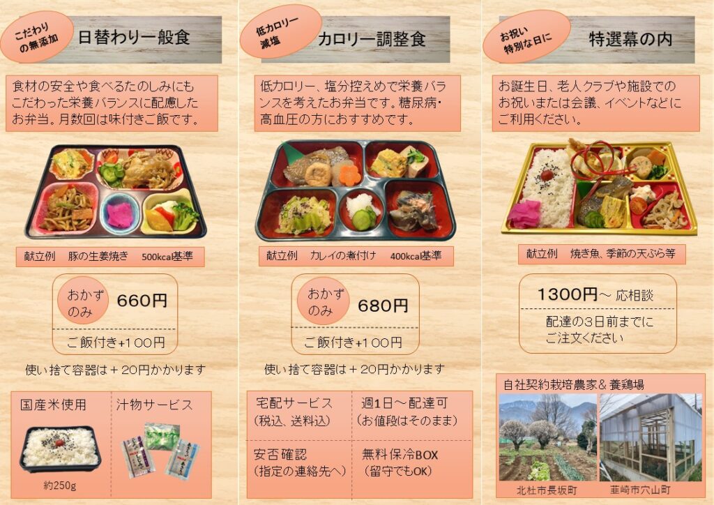 2023年11月1日より店頭・配達の商品単価は同じになります。ルート内3食以下の配達は送料200円が別途かかりますのでご了承ください。